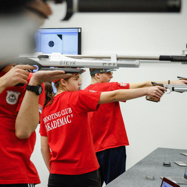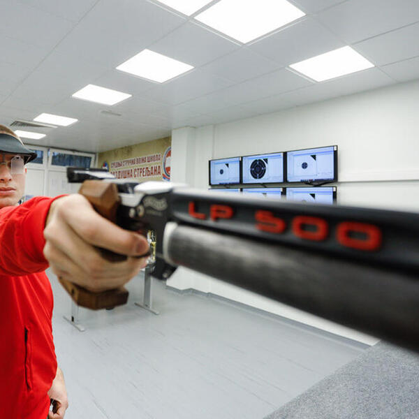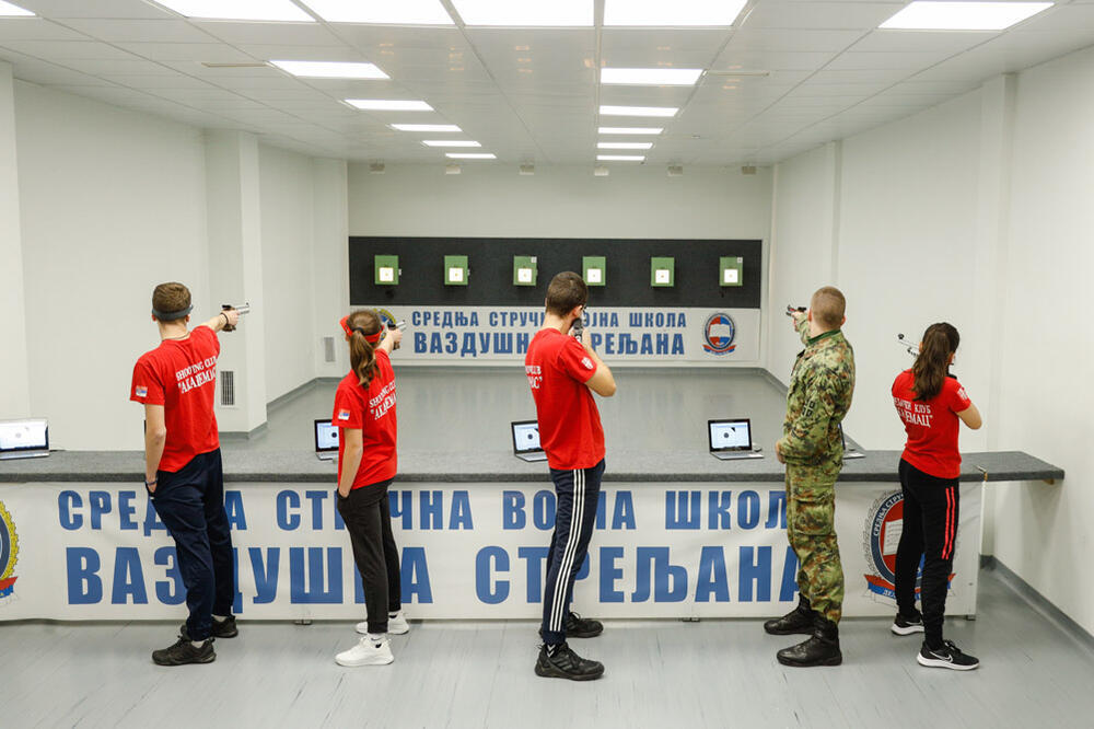 Učenike smo zatekli na treningu u novoj modernoj školskoj streljani. Među njima je i Luka, kome je Streljački savez Srbije minule godine uručio pehar i priznanje Strelac godine za najuspešnijeg u kategoriji vazdušni pištolj. Streljački savez Beograda proglasio ga je za najuspešnijeg pionira, kadeta i mlađeg juniora u 2021, ali i najuspešnijeg kadeta i juniora u 2022.