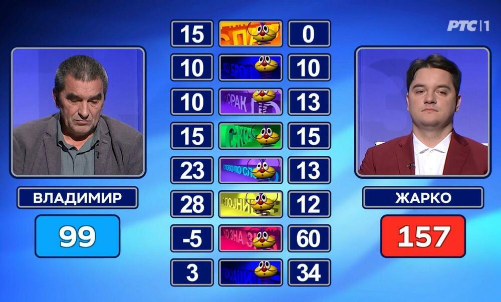 Kako su odmicale igre Žarko se približavao protivniku, da bi kod "Ko zna zna" preuzeo vođstvo i napravio značajnu razliku.