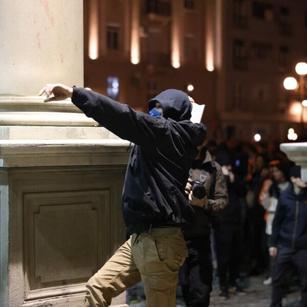 21.35 - Razbijene pločice ispred ulaza, demonstranti gađaju zgradu