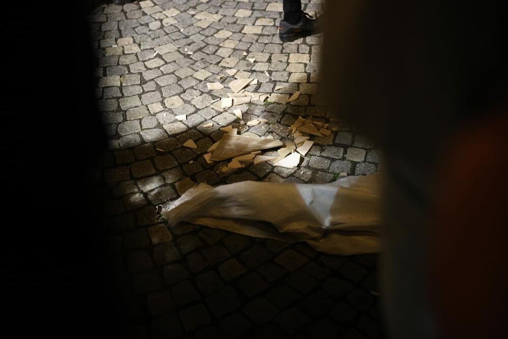 Ispred zgrade Skupštine grada razbijene su pločice, i krhotinama su potom grupice demonstranata gađale zgradu.
