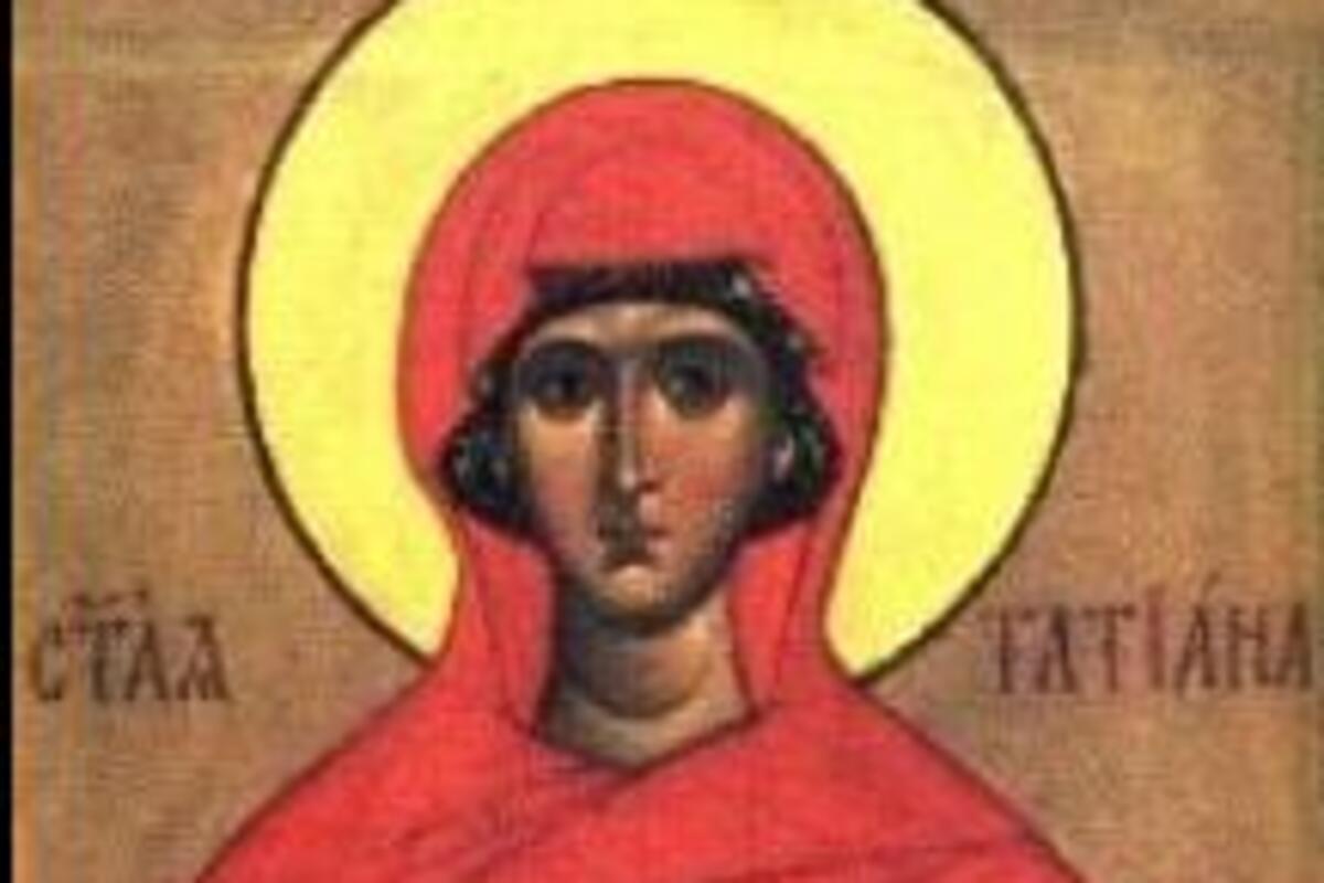 Tadašnji car Aleksandar bio je neodlučan u veri. Njegove sluge pred njega su jedan dan izvele Tatjanu devicu u Apolonov hram da se pokloni. Ona se pomolila Hristu i odmah se dogodio zemljotres, od koga ja pao idol i razbio se u komade a iz njega izleteo i đavo i pobegao. Srušio se i jedan deo hrama koji je ubio mnoge neznabožce.