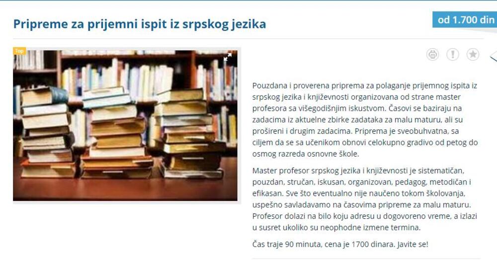 Oglasa ima dosta, ali mnogi profesori ne navode cenu svojih usluga, pa ih za više informacija morate kontaktirati.