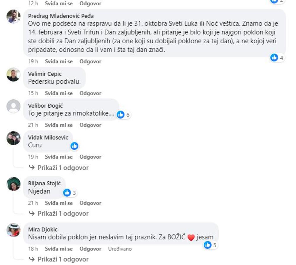 Mi smo vas pitali koji je to najgori poklon koji ste dobili za Dan zaljubljenih, ali je retko ko želeo da odgovori - ljudi su uglavnom govorili kako to ne obeležavaju.