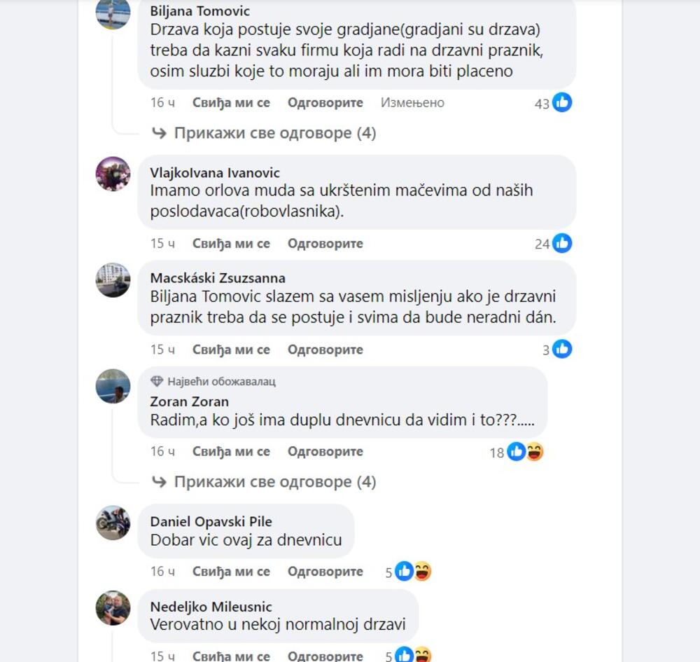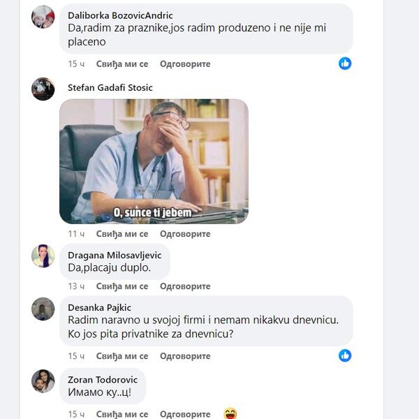Danas smo na našoj Fejsbuk stranici pitali građane da li im ukoliko rade tokom praznika, nakon mesec dana legne dupla dnevnica na računu, a ovo su njihovi odgovori: