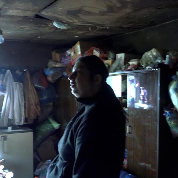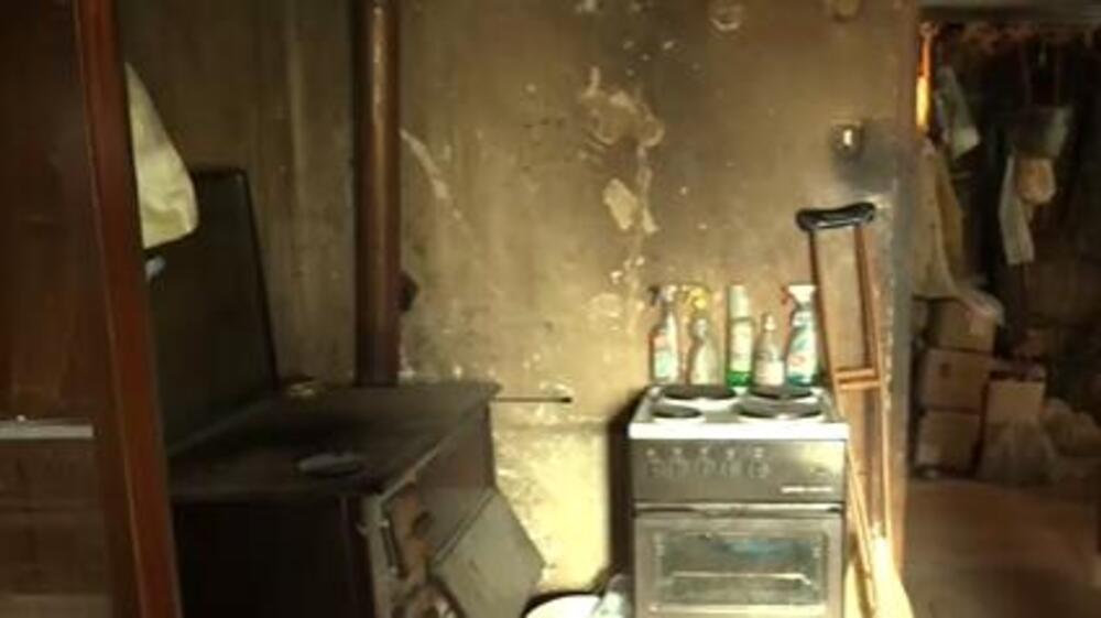 U kući su krevet, sto, stari ormar, frižider, električni i šporet na drva. Zidovi i plafon su poprilično uništeni, pa se samo postavlja pitanje kada će se ova kuća, pravljena od blata i slame, urušiti.