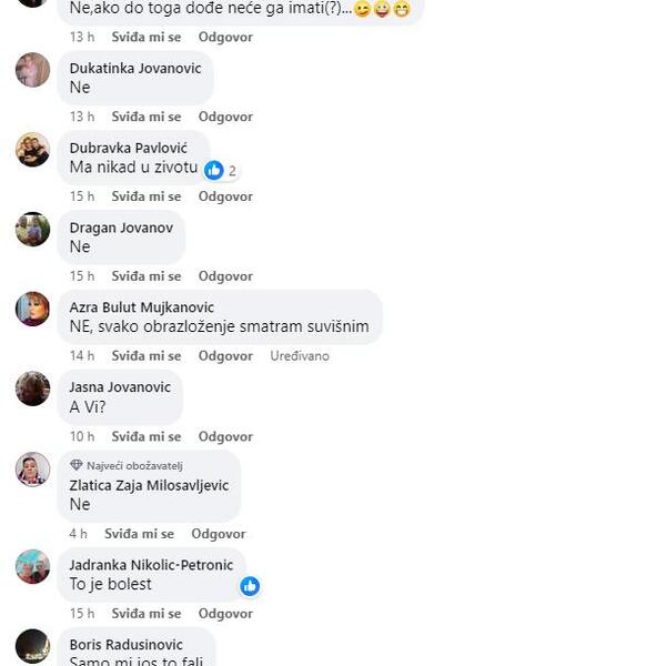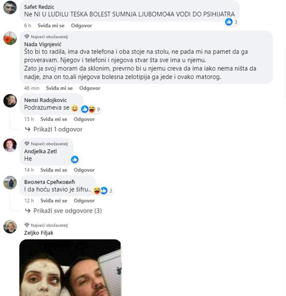 - Što bih to radila, imamo dva telefona i oba stoje na stolu, ne pada mi na pamet da ga proveravam. Njegovi telefoni i njegova stvar šta sve ima u njemu.
