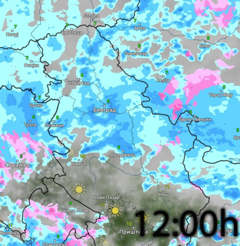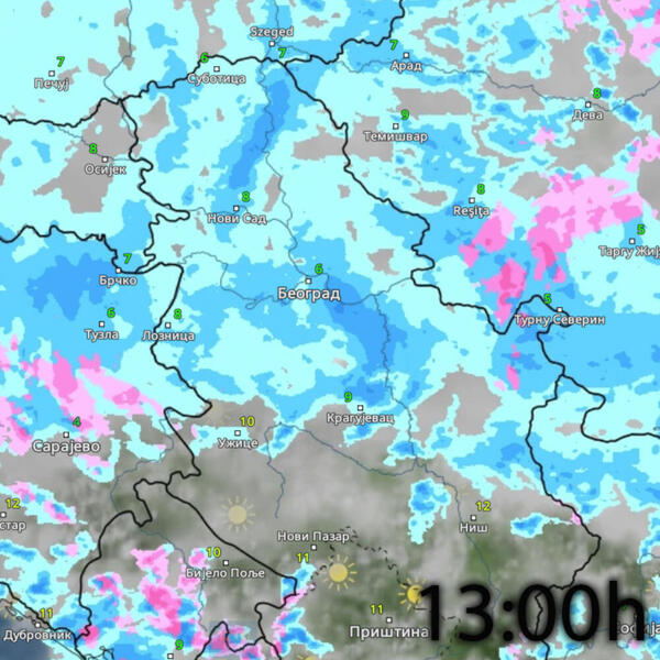 Danas u Vojvodini, zapadnoj Srbiji, Šumadiji, Velikom Pomoravlјu, kao i u Timočkoj Krajini pretežno oblačno i hladnije, mestimično s kišom i lokalnim plјuskovima. U ostalim krajevima, južnije od ovih oblasti, smenjivaće se sunčani i oblačni intervali, a pojava kiše biće učestalija u drugom delu dana, kada će lokalni plјuskovi biti praćeni i grmlјavinom. Na planinama sneg.