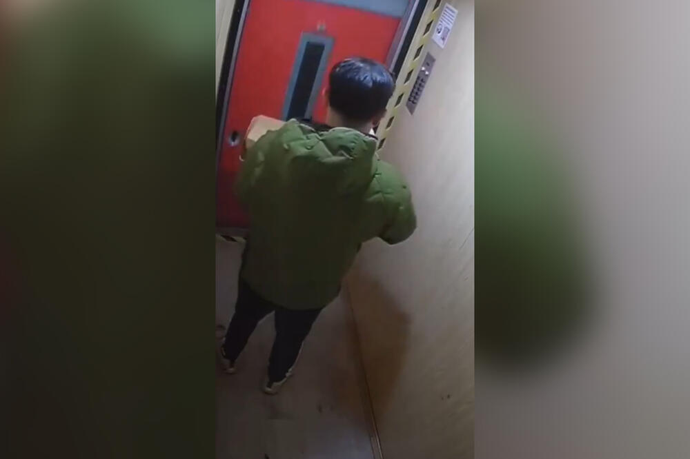 Snimak iz lifta zgrade, kako se može videti, nastao je 26. marta ove godine nešto pre 22 sata. Na snimku je muškarac koji nosi picu, a u jednom trenutku je otvara i počinje da pljuje po njoj.