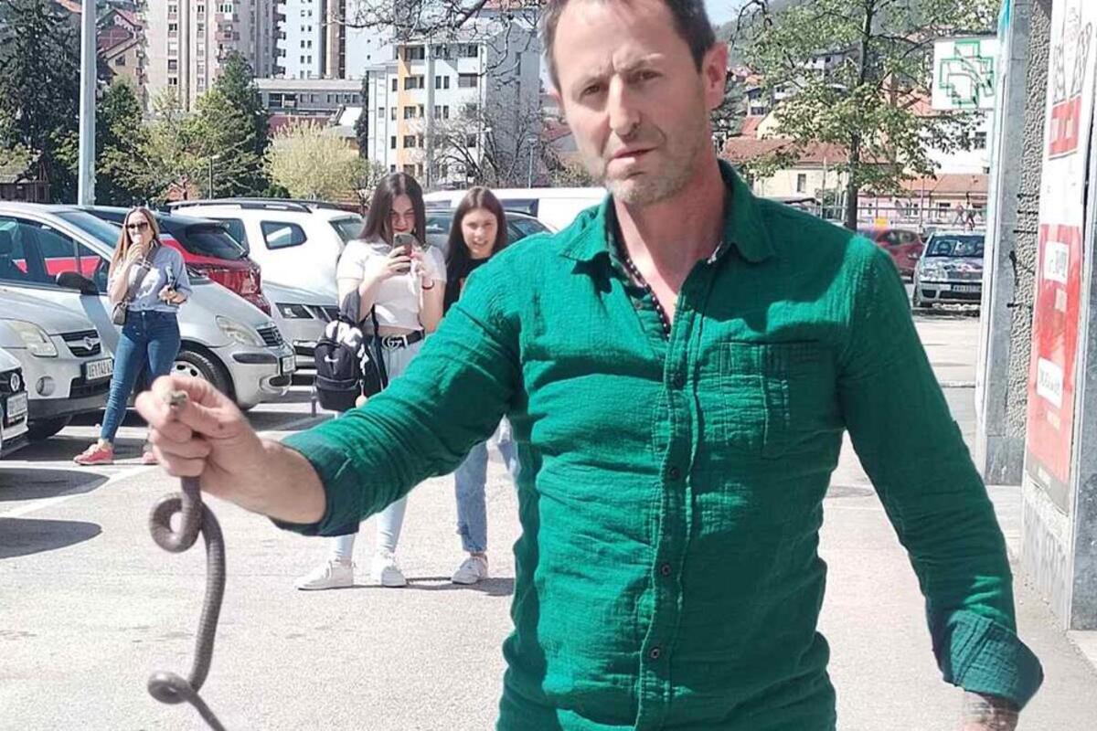 ARSENIJE GOLIM RUKAMA UHVATIO ZMIJU OTROVNICU: Drama ispred prodavnice u centru Užica (FOTO)