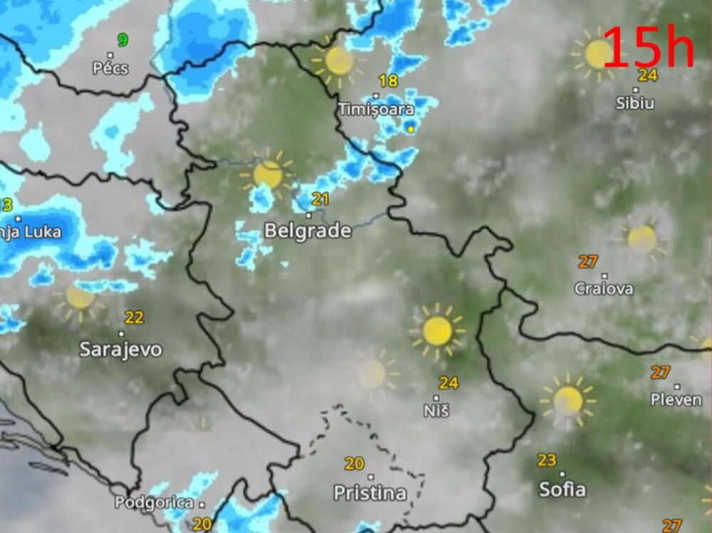 Prema podacima sa sajta "vremeradar.rs", kratkotrajna kiša se u Beogradu očekuje od 15 časova, dok istovremeno padavine dolaze i sa krajnjeg severa zemlje. Već u večernjim časovima, krajnji sever Srbije može da se nada pljuskovima koji će se proširiti i na ostatak zemlje. Uveče i noću u svim krajevima kiša i jako zahlađenje, a vetar će biti u skretanju na severozapadni, u zoni prolaska hladnog fronta jak, kratkotrajno i olujni.