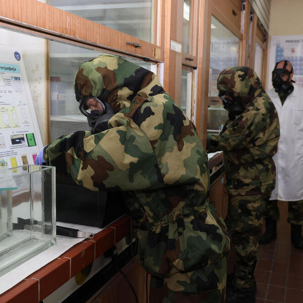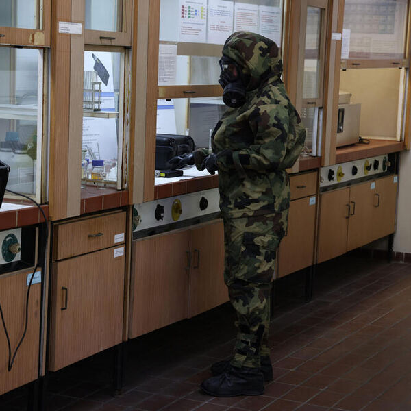 Scena kao iz nekog filma, a sve je zapravo deo obuke koja se redovno izvodi u radiološko-hemijskoj laboratoriji Centra atomsko-biološko-hemijske odbrane (ABHO) u Kruševcu. Laboratorija je počela sa radom 1975. i bila je jedna od najsavremenijih u ovom delu Evrope, a danas omogućava realizaciju složenih sadržaja obučavanja, uz upotrebu realnih hemijskih i radioloških kontaminanata - (otrovi nervnoparalitičkog dejstva, plikovačkog dejstva, zagušljivci i tzv. krvni otrovi i izvori jonizujućih zračenja).