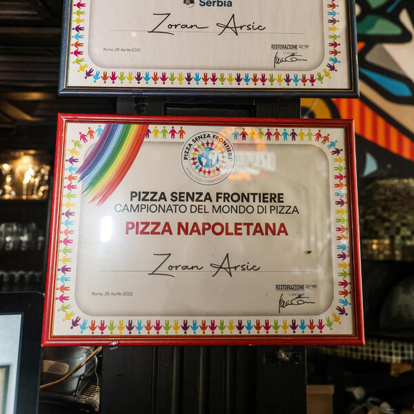 U lokalu možemo videti i njegove uspehe, koji ponosno stoje kod šanka - pohvalnica "najbolji kuvar Srbije" krasi ambijent restorana.