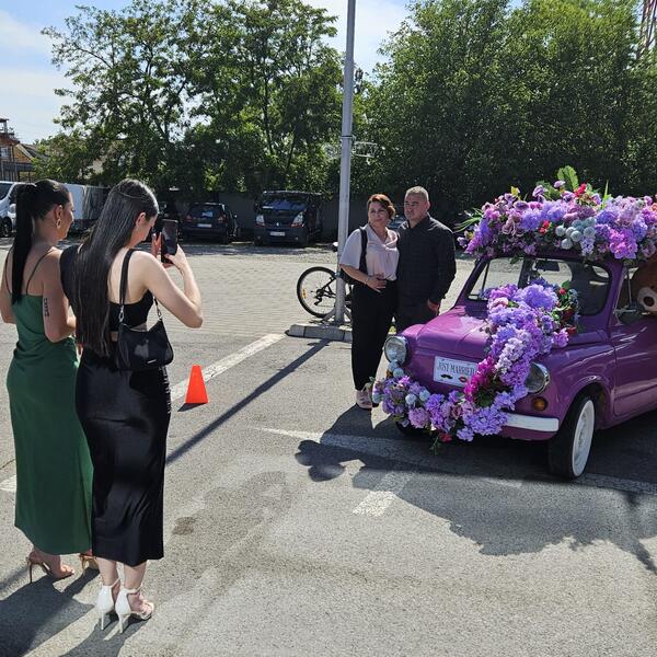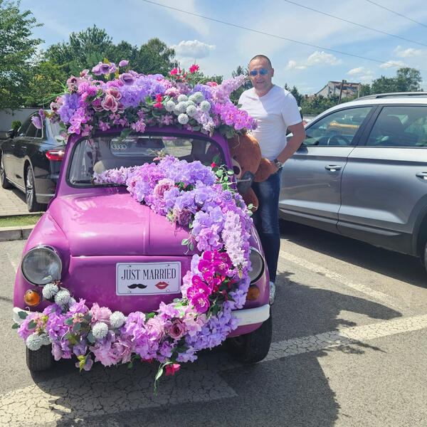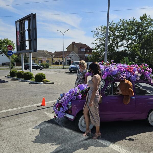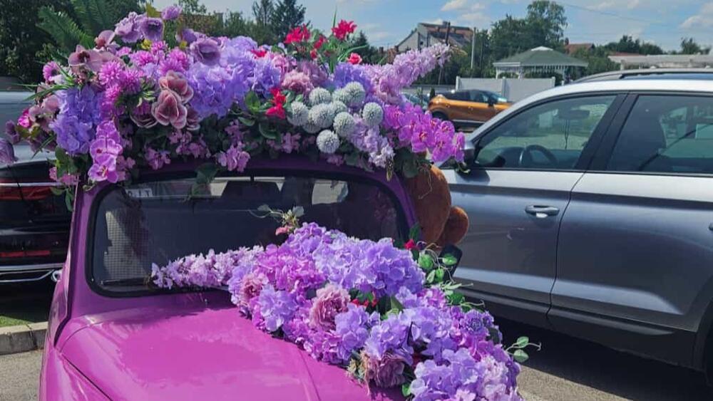 Dok se mnogi mladenci trude da u bračni život uđu sa što skupljim i luksuznijim automobilom, mladenci iz Novog Sada odlučili su se za prelepog ljubičastog fiću koji sav bio okićen takođe ljubičastim ružama.
