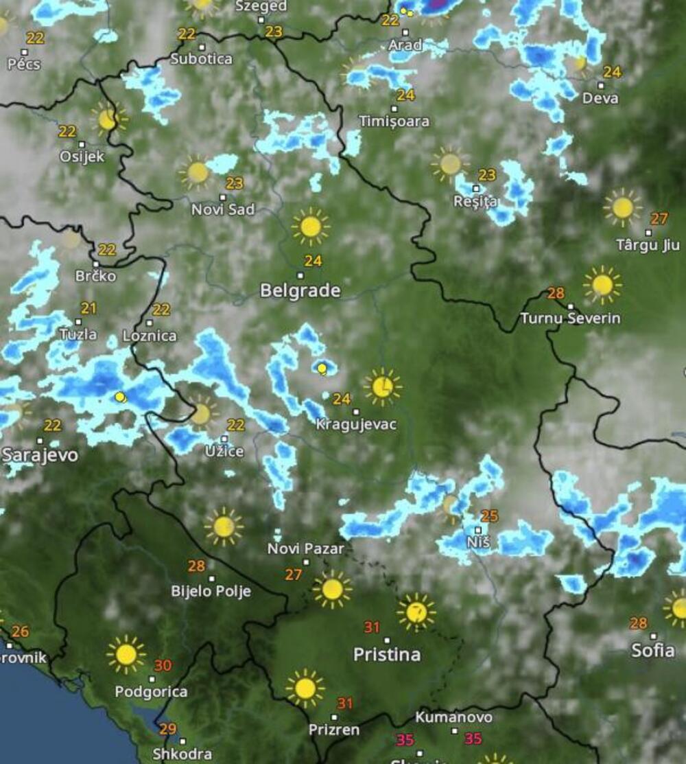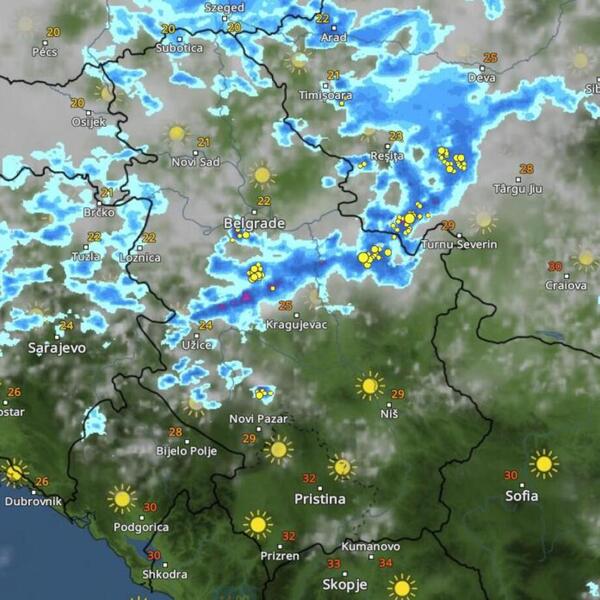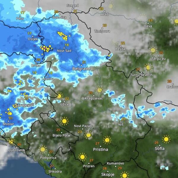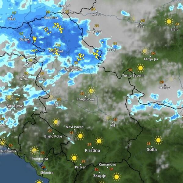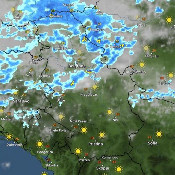 Danas na teritoriji Beograda nestabilno sa plјuskovima i grmlјavinom, koji u pojedinim delovima grada mogu biti intenzivniji sa pojavom grada i jakim i olujnim vetrom u zoni plјuska.