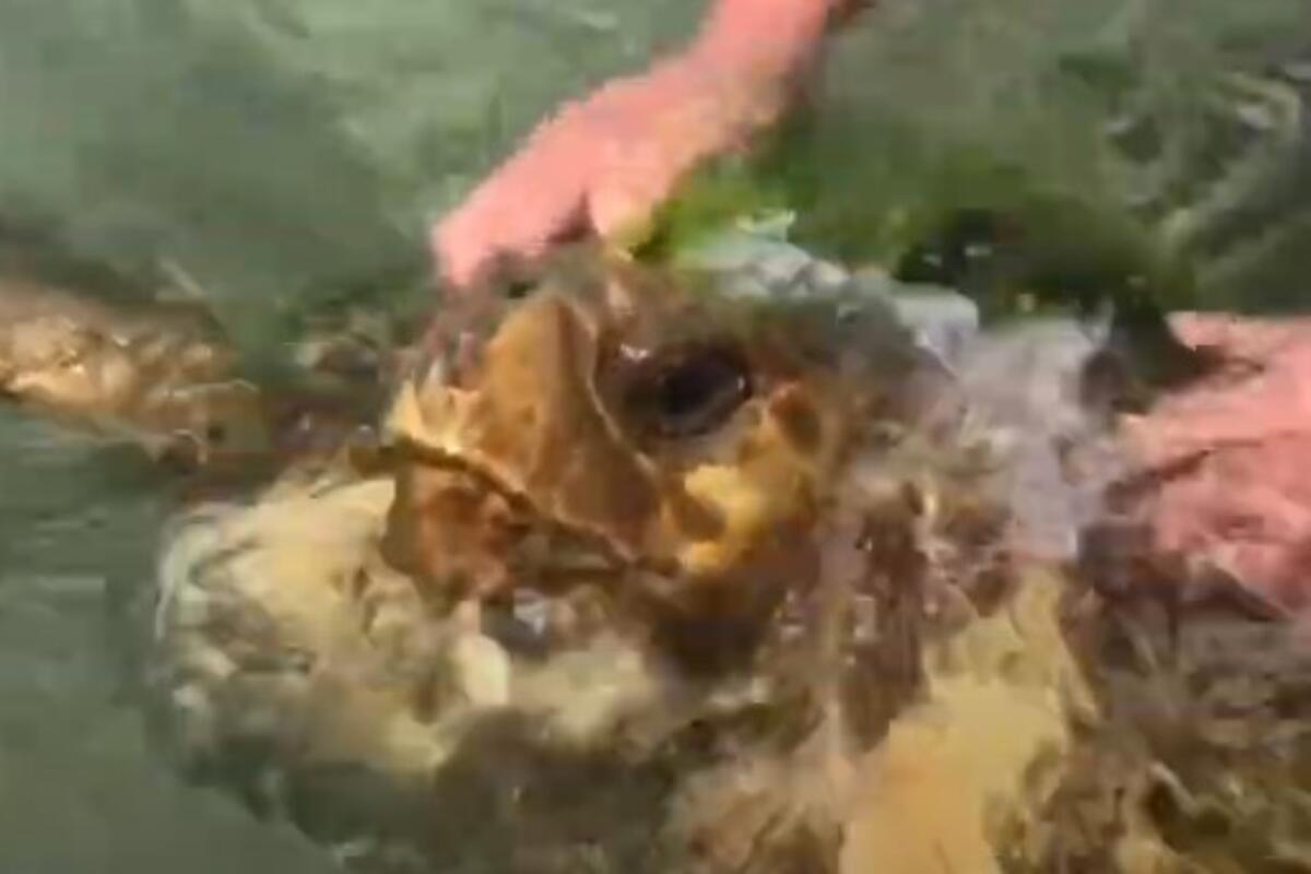 Reč je bila o ogromnoj morskoj kornjači koja je plivala vrlo blizu njih