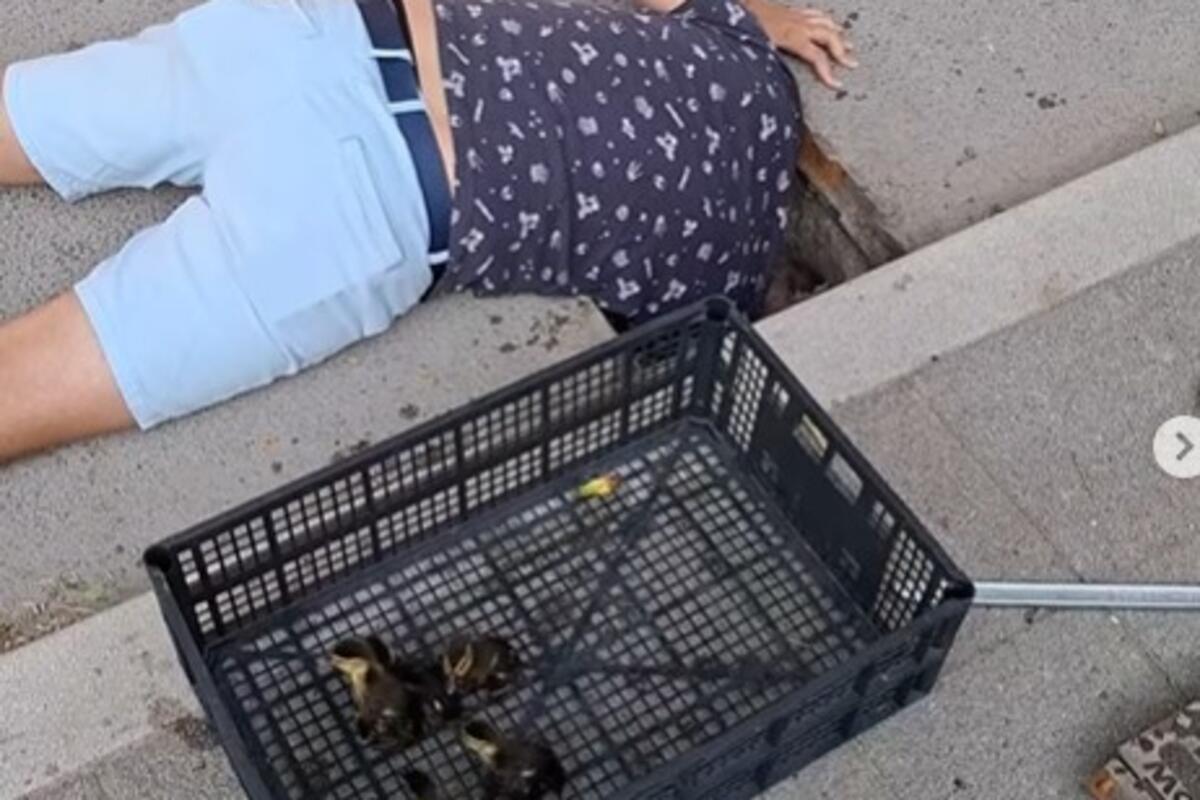 Kako se može videti momak iz Novog Sada je ležeći na asfaltu, rukama izvlačio jedno po jedno pače iz duboke šahte, a onda ih sve stavljao u gajbu, sa ciljem da ih vrati majci patki.