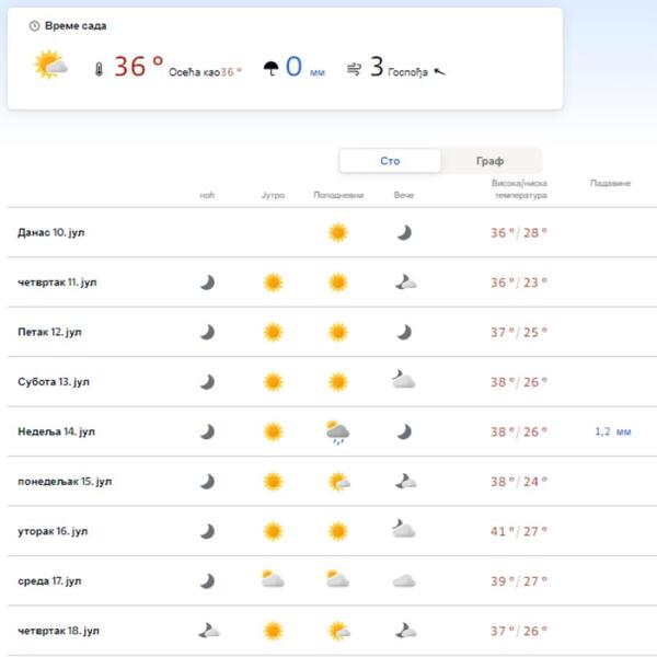 Sledeće nedelje će u Novom Sadu i Nišu biti čak 41 stepeni, dok će u Kragujevcu i Beogradu ići do 40. podeoka, javlja norveški sajt yr.no za koga kažu da je najpouzdaniji.