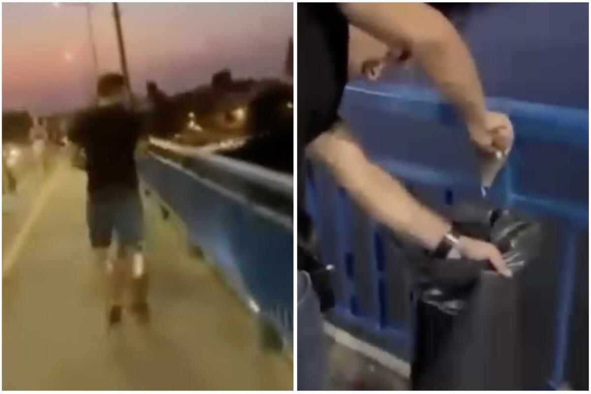 Dva mladića, koja su prelazila most, odlučila su da se "obračunaju" sa improvizovanom kantom za smeće koja je tu bila postavljena kako ljudi koji se vraćaju sa festivala ne bi bacali prazne ambalaže na ulicu.
