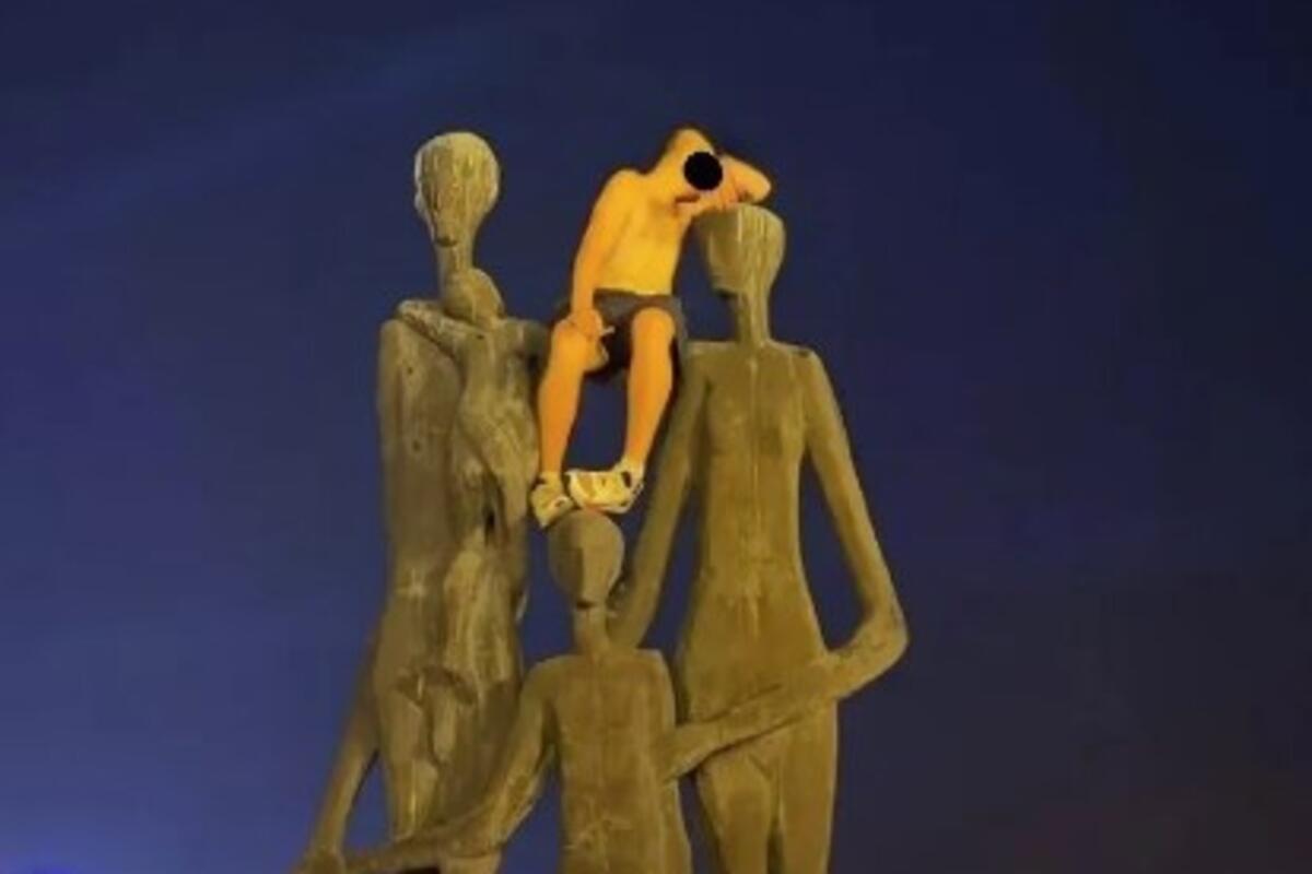 Na njoj se vidi nepoznati mladić kako sedi na spomeniku žrtvama racije naočigled svih prisutnih i na taj način ismeva našu istoriju.