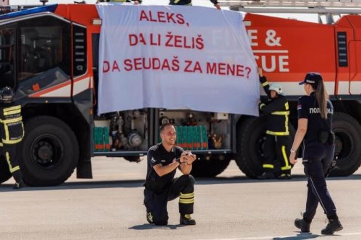 Petar, vatrogasac na niškom aerodromu, došao je na ideju da svoju devojjku Aleksandru zaprosi na nesvakidašnji način, a ovaj romantičan čin, objavio je i Aerodrom Konstantin Veliki na svom zvaničnom Fejsbuku.