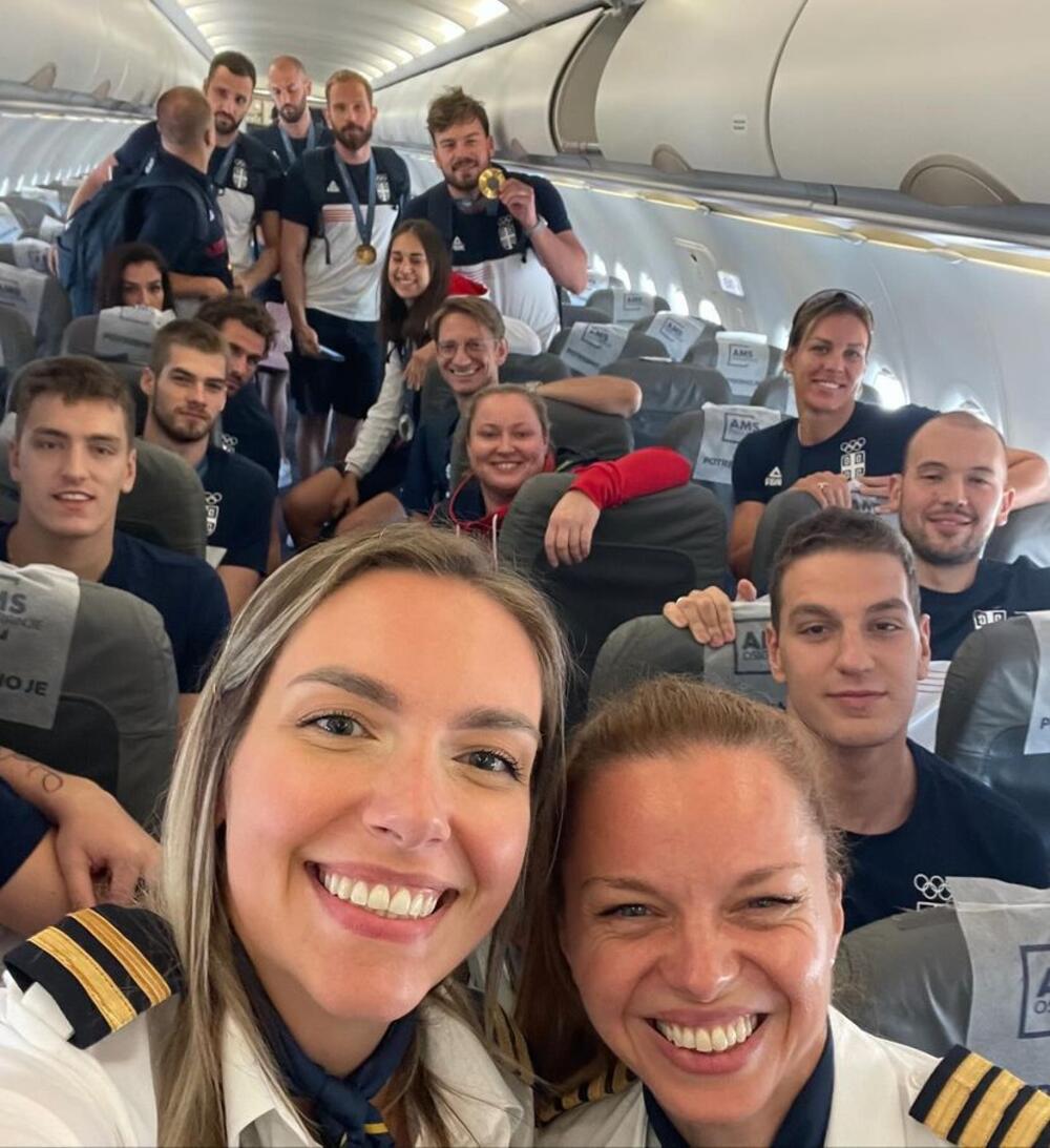 Današnji (ponedeljak, 12. avgust) redovan let Air Serbia JU241 iz Pariza do Beograda bio je sve samo ne uobičajen: putnici su bili okićeni olimpijskim medaljama, tokom leta se slavilo, čestitalo i veselilo, naravno bila je i (bar jedna) torta, dok su avionom upravljale dve dame: kapetan Vesna Bućan Aleksić i prvi oficir Dina Lalović!