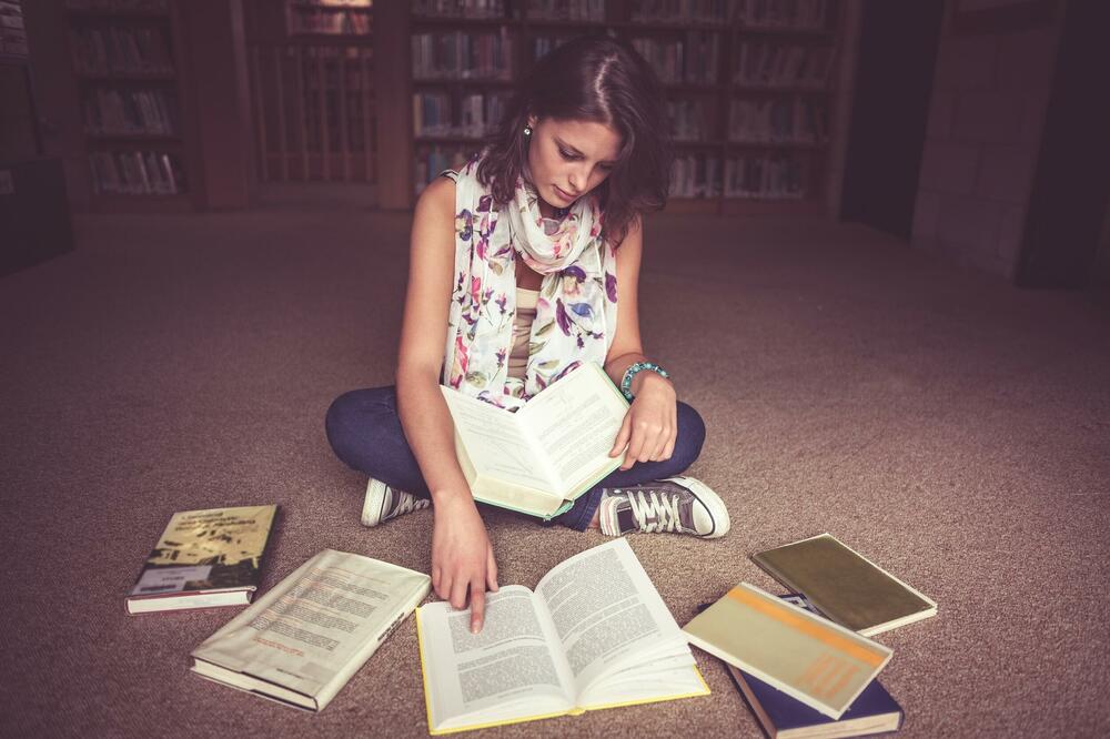 Devojka sedi i čita knjige, Foto: Profimedia
