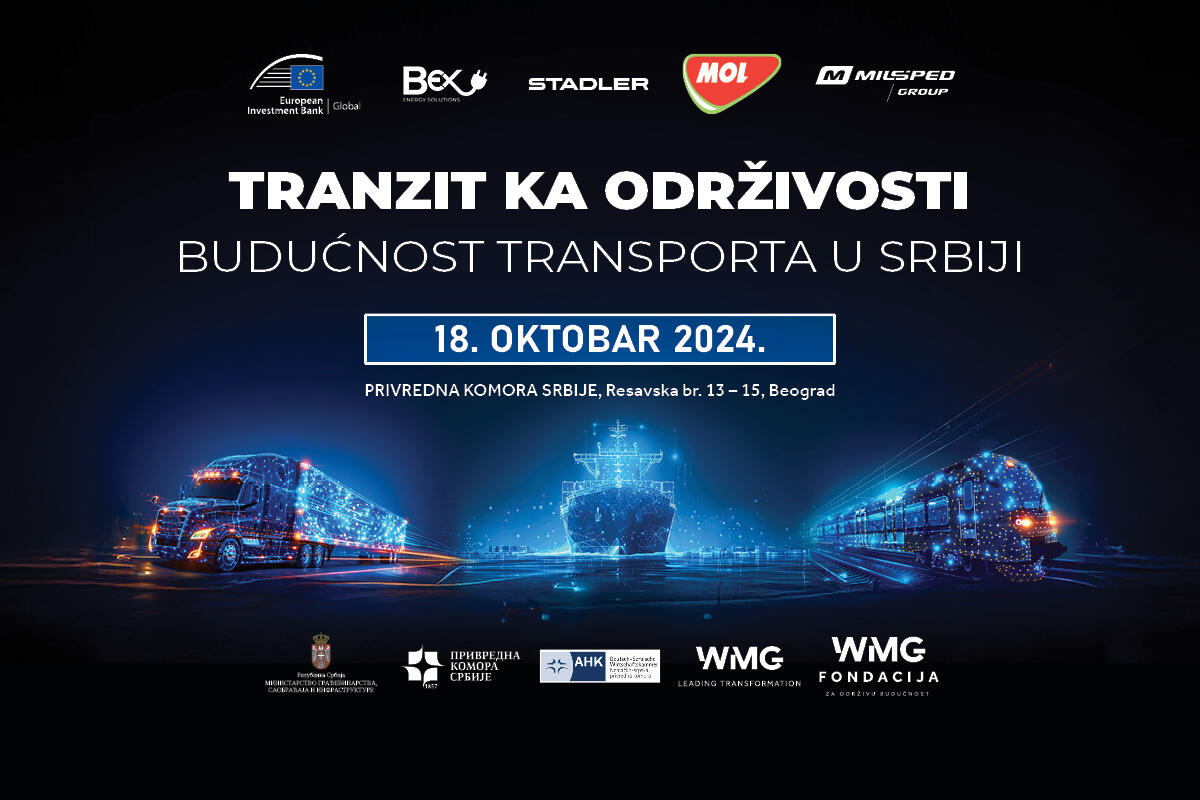 Konferencija „Tranzit ka održivosti - budućnost transporta u Srbiji” održaće se u petak, 18. oktobra, s početkom u 10 časova, u Privrednoj komori Srbije, Resavska br. 13-15, Beograd (I sala). Ulaz je besplatan pod uslovom da se prijavite putem LINKA ili na mejl adresu events@wm.group.