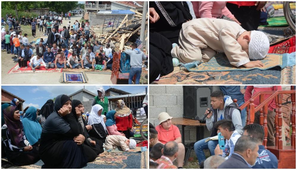 12:19 Meštani spremaju sve za molitvu u 13h. Ulica je barikadama zatvorena za saobraćaj.