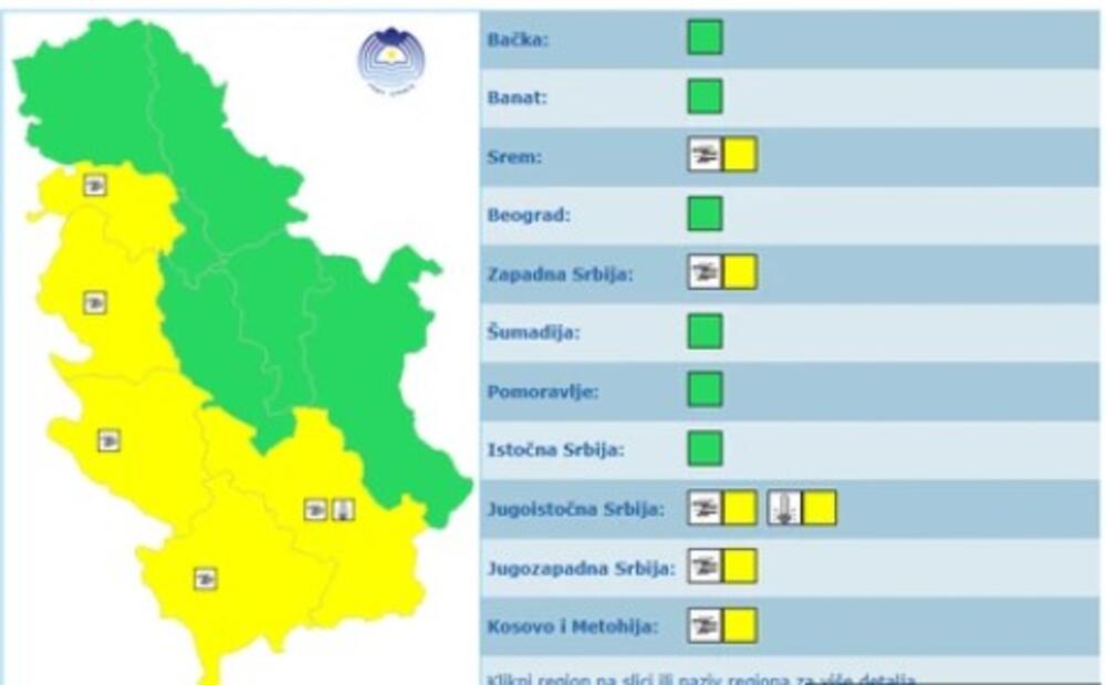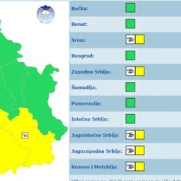 Žuti meteoalarm biće na snazi na KiM, u zapadnoj, istočnoj, jugozapadnoj, ali i jugoistočnoj Srbiji, gde će meteoalarm biti upaljen i zbog niskih temperatura.