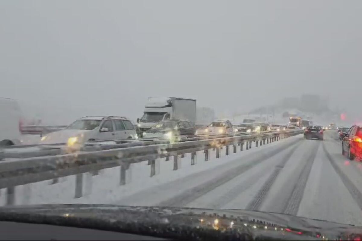 - Snega ima po kolovozu, a u jednom pravcu stvorena je dugačka kolona vozila. Saobraćaj se odvija otežano, sneg a ponegde ledena kiša i dalje padaju. Zbog lošeg stanja na putu šleperi ne mogu normalno da se kreću, što je u jednom smeru napravilo zastoj - kaže za RINU jedan od vozača na auto-putu Miloš Veliki.