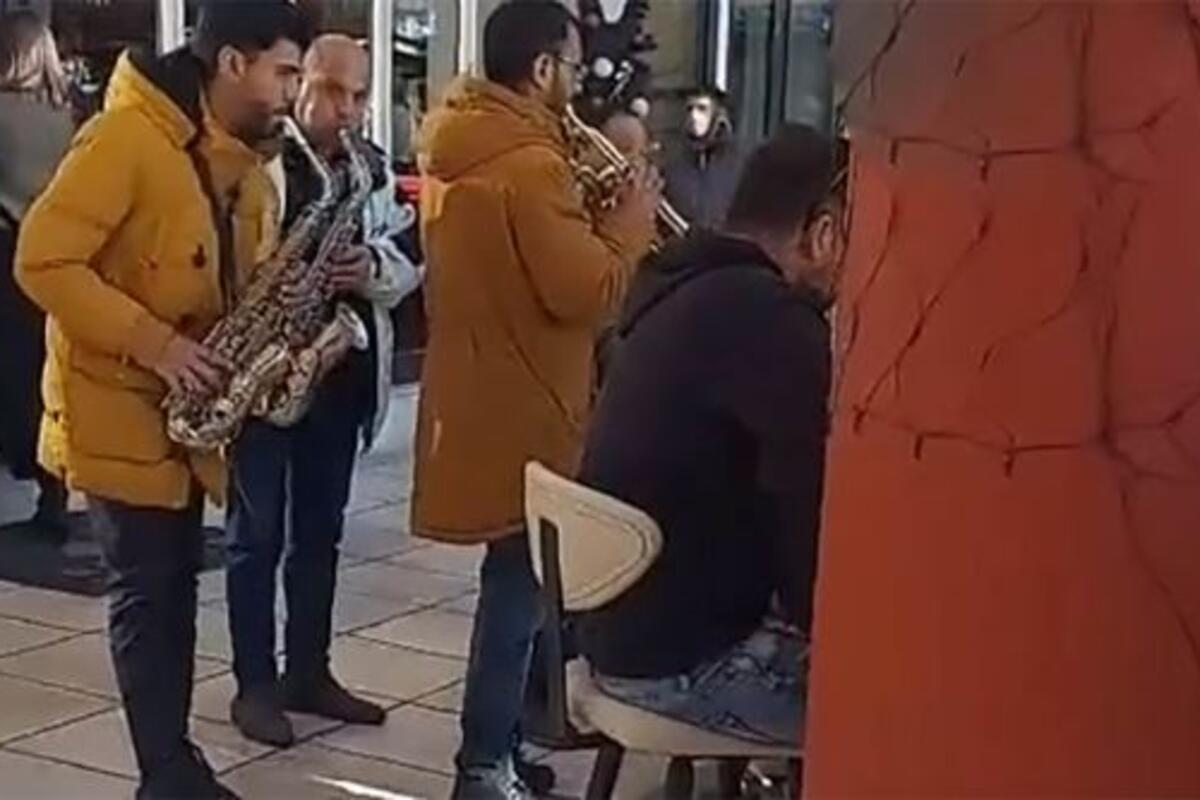 Na snimku se vidi grupa trubača kako svira poznatu srpsku pesmu Đurđevdan u centru Soluna, što je izazvalo pravo praznično raspoloženje među prolaznicima.