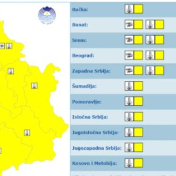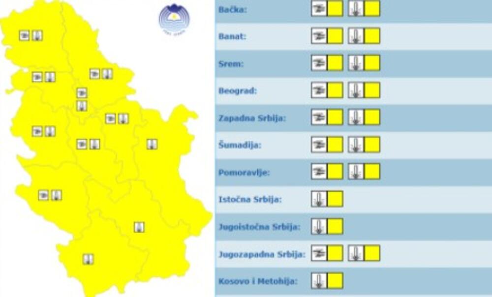 U sredu i četvrtak u celoj Srbiji na snazi meteoalarm