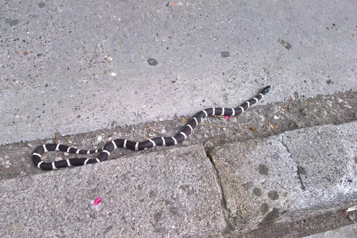 Kako je podelila jedna od korisnica Fejsbuka, reč je o kalifornijskoj kraljevskoj zmiji, koja važi za potpuno bezopasnu. Ovu vrstu ljudi znaju i da čuvaju kao kućnog ljubimca. Ali na one koji i nisu ljubitelji zmija, ova crno - bela aždaja deluje parališuće.