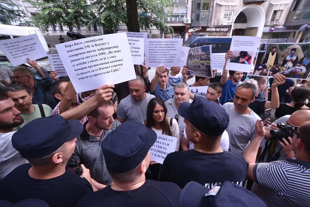 Razlog za njihovo okupljanje bilo je protivljenje manifestaciji koja se održavala u prostorijama Centra u okviru festivala "Mirdita, dobar dan". Naime, u Birčaninovoj ulici danas se održala promocija knjige čiji je autor bivša predsednica takozvane države Kosovo Atifete Jahjaga.