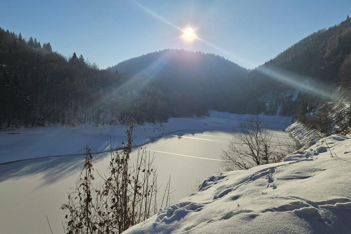 Surovi zimski uslovi i dalje traju, a Zlatarsko jezero ostaje okovano ledom.