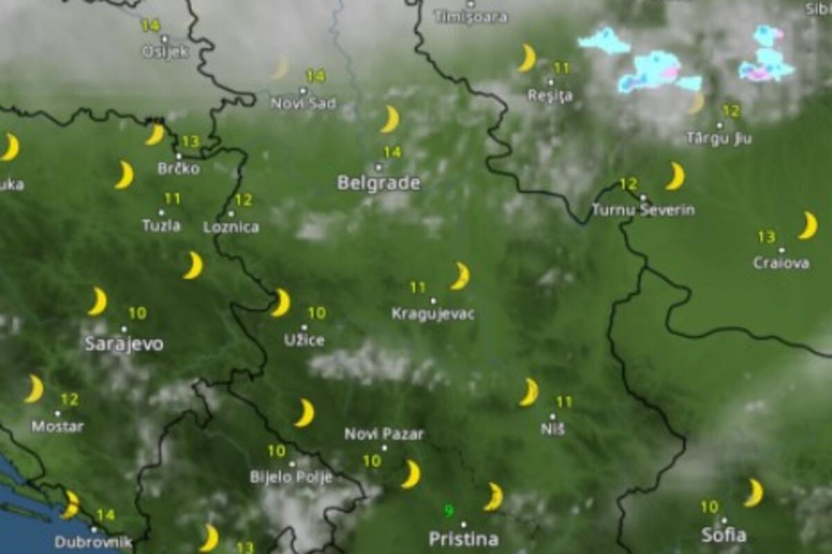 i. U Beogradu je i dalje toplo, uz 15 stepeni, ali već prema ponoći uz prodor hladno fronta sledi nagli pad temperature vazduha.