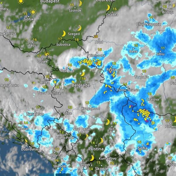 U toku večeri i noći širom Srbije očekuju se kiša i pljuskovi sa grmljavinom. Biće uslova i za grmljavinske oluje sa gradom i vrlo obilnim pljuskovima, uz opasnost i od grada.