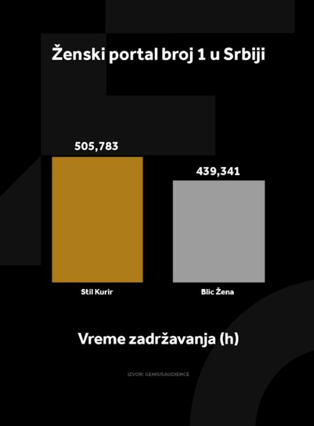 Kada je reč o ženskim portalima, „Gemiusovi“ podaci pokazuju da je Kurir Stil pozicioniran kao vodeći sajt u Srbiji. U aprilu je Stil imao čak 22,6 miliona otvorenih strana, odnosno 4,9 miliona više otvorenih strana od drugoplasiranog ženskog sajta. Kurir Stil korisnici otvore 27,38% više strana, što govori u prilog kvalitetu sadržaja portala Kurir Stil. Kada se sabere vreme koje su građani Srbije proveli na portalu Kurir Stil, dobije se neverovatan broj od 57 godina i 269 dana. To znači da smo za 66 hiljada sati ispred drugoplasiranog ženskog sajta.