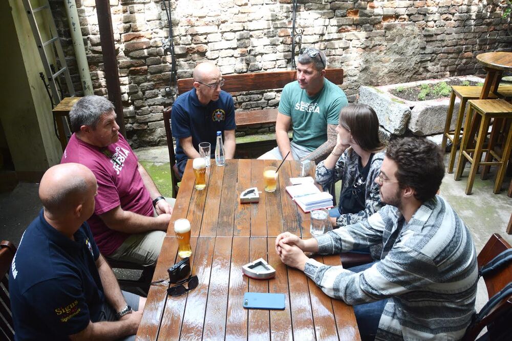 Usput naručujemo piće, a pogađate šta je prvo palo na pamet velškim prijateljima? Rakija naravno. Ipak, obzirom da je bilo rano, odlučili su se za srpko pivo i kaficu. Stiv i njegove kolege rekli su nam da dolazak u Srbiju nakon toliko godina za njih predstavlja pravo uživanje. Osim saradnje rodilo se i prijateljstvo između dveju naroda, a organizacija "Blazing to Serbia" otpočela je još akcija kako bi pomogla ljudima iz Srbije.