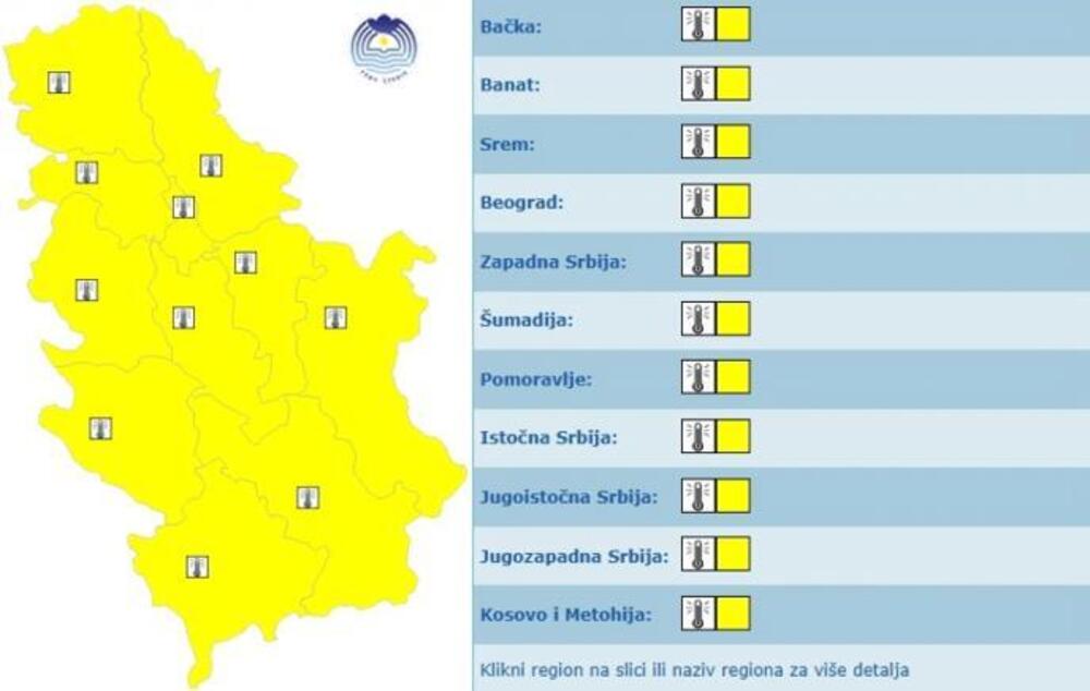 Van većih urbanih sredina, naročito u centralnoj i južnoj Srbiji, noći i jutra biće relativno sveža (uz izražena dnevna kolebanja temperature, ponegde i za više od 20 stepeni), dok će u Vojvodini i Beogradu i jutro biti toplije.