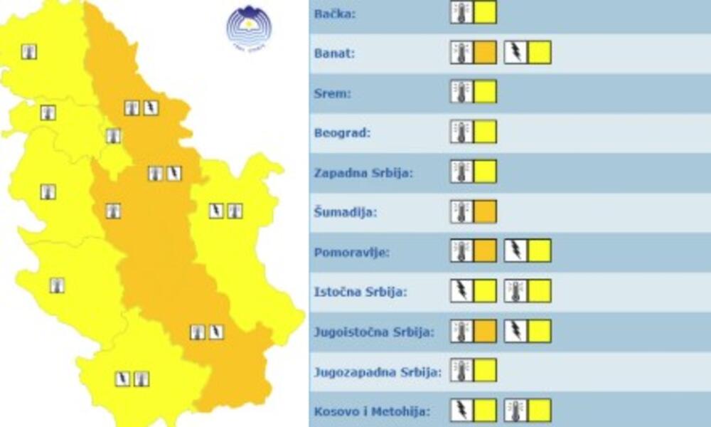 Zbog velikih vrućina danima su na snazi žuti i narandžasti meteoalarm, a danas će upozoravati i na pljuskove i grmljavinu u Banatu, Pomoravlju, istočnoj i jugoistočnoj Srbiji, kao i na KiM.