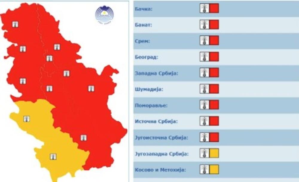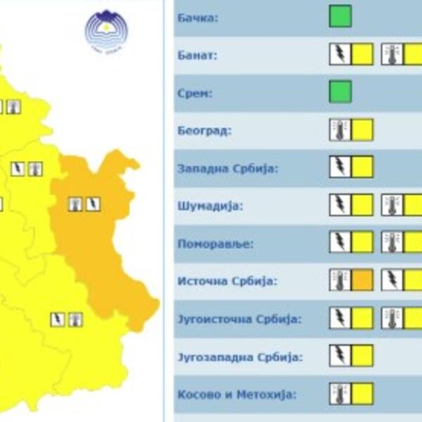 Samo u jugoistočnoj Srbiji i na Kosovu i Metohiji na snazi je narandžasti alarm.