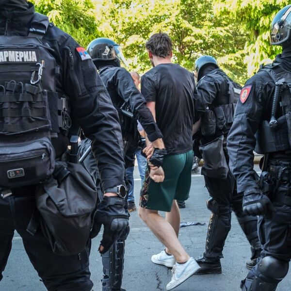 Na uglu Makedonske i Nišićeve ulice grupa građana blokirala je saobraćaj. Nakon određenog vremena stigla je Žandarmerija. Kako javlja naš reporter, Žandarmerija je potisnula ljude od zgrade "Politike" do Trga Republike.
