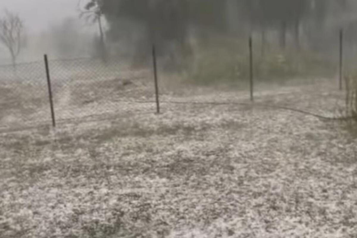 Tuče jak grad i snažan pljusak, a kako se vidi na snimku, celo dvorište jedne porodične kuće se zabelelo.