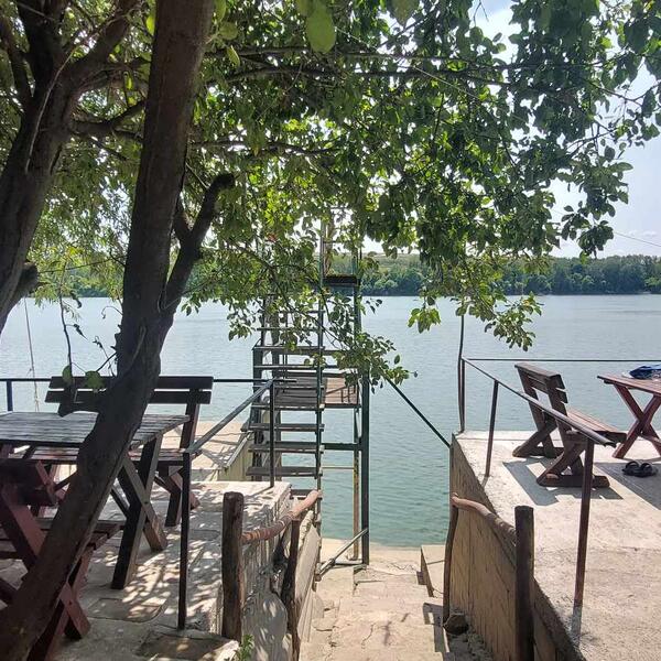 Ovde nema klasičnih ugostiteljskih objekata, ali postoji improvizovani kafić - tačnije, drveni bar u hladu, gde možete popiti domaću kafu za manje od 200 dinara, espresso i kapućino za nijansu više, ili uzeti osvežavajući sok ili pivo. Hrana se ne služi u širokom izboru, ali može se pronaći poneki riblji specijalitet - pržena riba, girice ili nešto slično, sasvim dovoljno da upotpuni doživljaj. Ionako, u ovakvom ambijentu, teško da vam išta više i treba.
