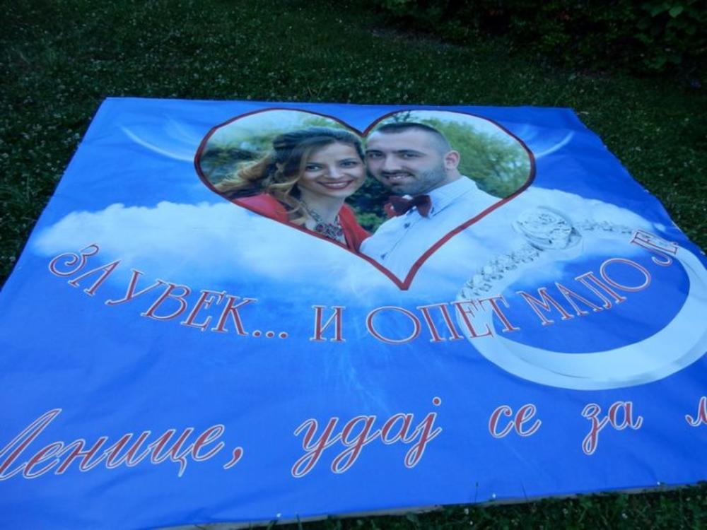 Ona lepa i posebna Leskovčanka Jelena Pešić i njen mladić Marko Denić opušteno su šetali parkom Devet Jugovića podno Hisara, sve dok devojci pažnju nije privukao gitarista, zvuk drona i dok pred sobom nije ugledala veliki pano s ljubavnom porukom, piše portal Jugmedia.