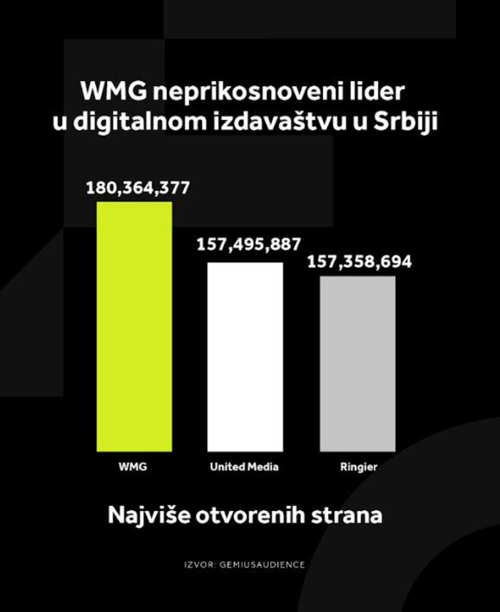 WMG je digitalna medijska kompanija broj 1 u Srbiji i po broju jedinstvenih korisnika.