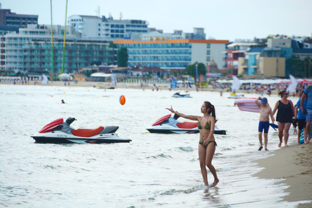 Plaža u Sunčevom bregu dugačka je 10 km, a široka od 30 do 100 metara. Pesak je zlatno žut, a ono što je posebno važno jeste da je plaža izuzetno čista. Jedan od dokaza njenog kvaliteta jeste i nagrada „Plava zastavica (Blue Flag), zbog prirodnih i ekoloških prednosti. Temperatura vode u proseku je 23 stepena leti, a kako je čista i prozirna, pravi ja mamac za rashlađivanje tokom vrelih letnjih dana. Dno je peskovito i postepeno se spušta, pa tako možete bez straha pustiti decu da odu u „dubinu“. Ljubitelji vodenih sportova neće ostati razočarani, zbog brojnih atrakcija na vodi koje se u Sunčevom bregu nude. Tu su između ostalog džet-ski, skijanju na vodi, surfovanju, parasejling, ringo rajd, jedrenje na talasima i brojne druge zanimljive morske avanture.