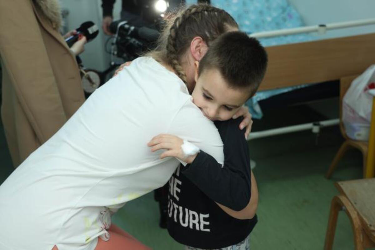 ako u bolničkim posteljama uređenih soba, dečica su nas dočekala vedra i nasmejana. U jednoj petogodišnji Ilija sa mamom. Jedva je dočekao da se slika s paketićem, uzeo ga s osmehom i požurio da vidi šta sve to ima unutra.