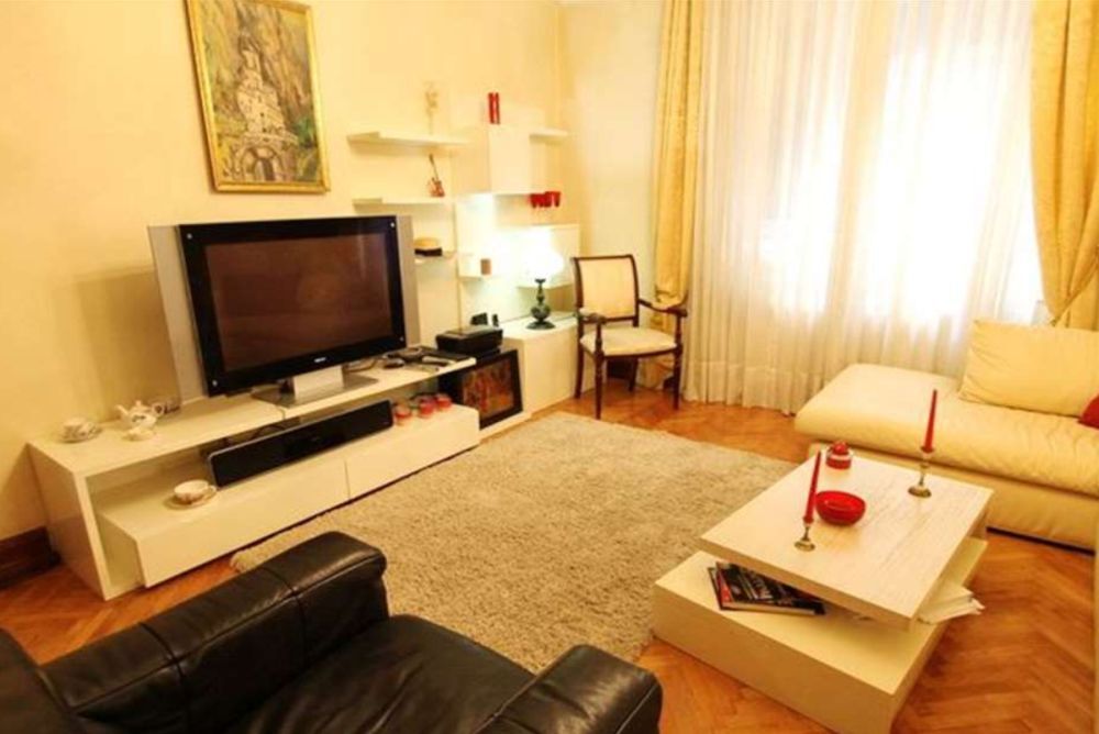 U ulici Kralja Petra na Dorćolu, nalazi se dvosoban stan od 80 kvadrata. Izuzetno je lep, jedan deo opremljen je u klasičnom stilu, dok je dnevna soba modernog tipa sa kožnim nameštajem.